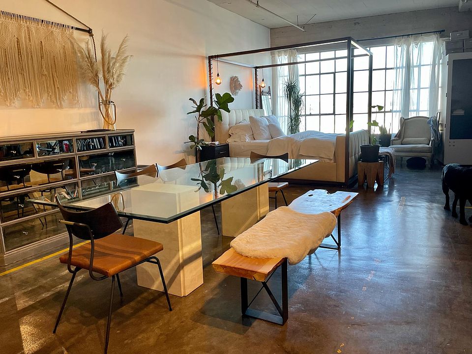 Prime Arts District location, walking distance to several award winning restaurants (Bestia, Bavel, Girl & The Boat, Brera, Factory Kitchen, Damien, Gorilla Tacos, etc.), bars, coffee (Blue Bottle, Stumptown, Verve) and easy parking! Hank's organic grocery store across the street. The Arts District is a gem. Green space coming soon near the 6th street bridge. Renovated industrial loft with soaring windows facing the mountains and the best roof top views in the entire city! All utilities and internet included in cost. Additional monthly fee of $300 if preferred the unit be furnished.