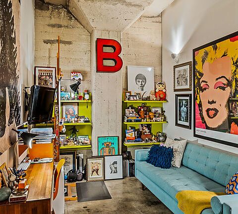 A master class in curated energetic space, this top floor, south facing loft in the historic Toy Factory building offers the quintessential Arts District experience. As featured on the cover of DTLA News' "Art of the Loft" article, nearly 1,500 square feet of open concept living showcase the muscular, original elements of the 100-year-old manufacturing plant: expansive original steel factory windows, concrete pillars, polished concrete aggregate floors, exposed ducting, and massive volumetric spaces. An ideal residence for artists, collectors, musicians, and other creative souls, with endless expanses of gallery/display and work space. Extensive custom hidden storage, a 2 ft. raised bedroom zone with a fleet of deep roll-out drawers, full bath with dual vanities, laundry inside the unit, and a flexible den or office (possible second bedroom) with custom pocket doors complete the space. The HOA features a rooftop pool just one level above the unit, with dramatic skyline views and a fire pit lounge, and a community garden space. Additional perqs of this offering include controlled access, fully outfitted on-site gym and one dedicated parking spot (plus ample public parking across the street), conveniences that let you relax, entertain friends and family, and enjoy your home. HOA dues are $965/month and include a doorman, water, trash, sewer, and building amenities. The lively Flamingo Bar and a bodega/convenience shop located on the first floor provide food, drink, and sundries at your fingertips. And close by, great dining from Camelia restaurant to Bestia, Urth, Girl and the Goat, Bavel, and more, plus shopping and neighborhood landmarks, including the forthcoming Sixth Street PARC - 12 acres of green space, art installations, and gathering areas along the LA River. Not to be missed!