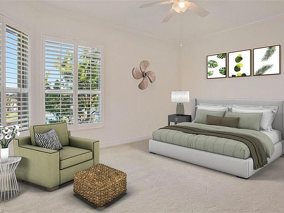 This is one of the best views available in Les Chateaux! This unit is filled with Light all day long. This is an extremely spacious 3 bedroom condo, Livingroom, Dining Room, Den and an oversized 2 car garage, plus 2 lanai patios. This split floorplan is ideal for guests. The community pool is just a short walk away. Close to Naples beautiful beaches, shopping, and restaurants. Photos virtually staged.