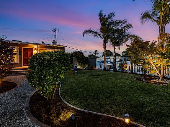 Experience comfortable living in this remodeled 4BR/3BA ranch style home, situated on a corner lot. This home boasts an updated kitchen w/stainless steel appliances, a gas range, granite countertops, garden window, & a skylight that bathes the space in natural light. Enjoy the convenience of double pane windows, laminate floors & a freshly painted interior. Stay comfortable year round w/central air conditioning, benefit from the efficiency of owned solar panels & a 200 amp electrical service. There are 2 primary bedroom suites. The front bedroom suite includes a wet bar, a remodeled bathroom w/custom tile work, a Toto toilet & tile floors. The second bedroom suite also offers a remodeled bathroom w/custom tile work. The hall bathroom is also remodeled & features a relaxing jacuzzi-style tub & tile floors. The liv room& dining area are enhanced by a skylight & vaulted beam ceilings, and a third skylight in the hallway creating a spacious & airy atmosphere. Outside, the landscaped front yard is adorned w/palm trees, a fountain, a welcoming walkway. The back yard offers a spacious patio, perfect for outdoor entertaining, & a storage shed with solar lighting. Additional features include a laundry room w/a front-loading LG washer & dryer, a detached 2 car garage, & sprinkler system.