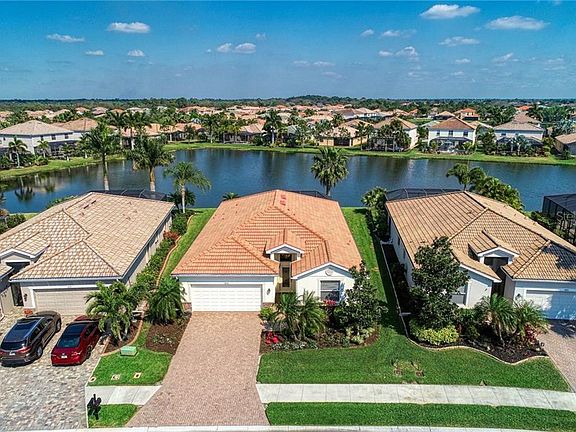 Please submit Highest and Best offers by Sunday 3-7-2021 at 6pm. Prepare to be impressed by this meticulously maintained and spaciously designed Trevi model, located in the highly sought after gated community of Stoneybrook at Venice. Built in 2011, this home boasts 4 bedrooms, 3 full bathrooms, and a large extended lanai that features a beautiful and tranquil water view. Inside you will appreciate the tile on the diagonal throughout the entire home, including all of the bedrooms, meaning no carpet anywhere. The 10 foot high ceilings are accented with decorative crown molding throughout all of the main living spaces, as well as in the master bedroom and bathroom. The kitchen features a large island, oversized pantry, tons of cabinet storage, and is accented with sparkling granite countertops, stainless steel appliances, and under cabinet lighting. The master bedroom is a true retreat, featuring two large walk-in closets and a spa like master bathroom with dual sinks, walk-in shower, and large soaking tub. In the front of the house you will find two light filled bedrooms that share a bathroom on one side of the house, as well as a guest bedroom retreat on the other side tucked away by itself that features an en suite full bathroom. Plantation shutters in the dining room and custom drapery in the living and dining room beautifully accent the space. Outside you will find an oversized screened lanai with a stunning lake view that has endless possibilities. There is even enough room for a pool should you decide to add one in the future. The outdoor furniture and grill are staying with the home as a gift from the current owners! The yard is beautifully accented with lush tropical landscaping and reclaimed irrigation. This home has been lovingly cared for, and the layout is perfect for everyday living and entertaining. Stoneybrook at Venice is an amenity rich community featuring a community pool, hot tub, tennis, fitness center, sports complex, and so much more! Conveniently located to local beaches, downtown Venice, I-75, and all of the area's attractions, you are right in the heart of all of the action. If you have been dreaming of enjoying the Florida life... look no further!
