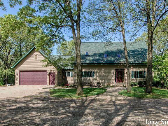 A two story Post and Beam design surrounded by private woods and fenced back yard. Over 4,000 sq ft finished with extra large storage space unfinished. Three stall garage, large back deck with firepit to take in the natural beauty of the 4 acres. The four season porch overlooks the backyard. Stone fireplace towers to the vaulted ceiling to warm you on those winter nights. Between Lowell and Ada for quick trips to town. The lower level walks out to a patio with complete kitchen and bar along with pool table, 4th bedroom and full bath.