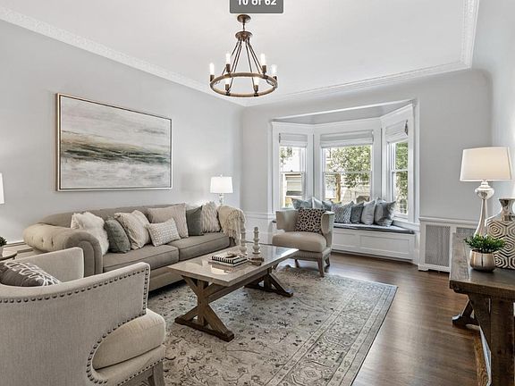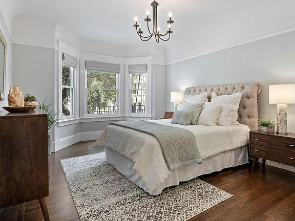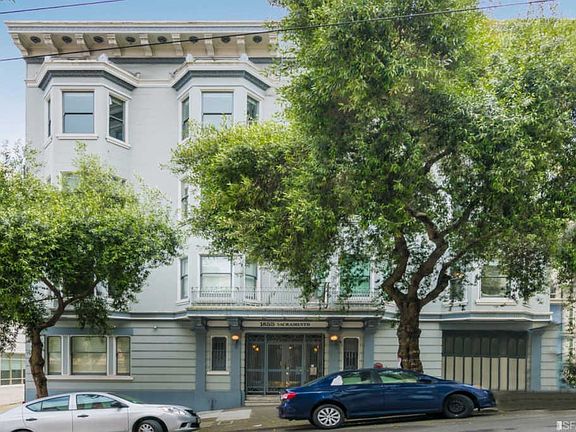 Live large in this top floor Pac Heights Edwardian, just blocks to Lafayette Park, Whole Foods, Polk St, Civic Center, Davie's Symphony. The well-maintained, handsome Edwardian building offers period details, an elevator, community room and shared garden. The expansive living room features prominent bay windows, ornate crown moldings and hardwood floors. Formal dining room sits between the kitchen and LR and features glass-paned French doors, coved ceilings, board and batten siding and a proud picture rail. Kitchen is outfitted w/stainless steel appliances, gas range w/hood, lots of counter space, storage & large pantry. Remodeled bath has a body jet shower, new fixtures and cool grey tile. Large bedroom is covered in hardwood floors & the Bay window welcomes tons of light. In-unit laundry and California Closets. Deeded and and secure storage unit. Leased parking 1 block away. Minutes to Trader Joe's, bars, music venues, Michelin Star restaurants, MUNI, BART, 101, 280, Tech Shuttles.