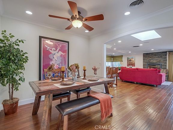 and functionality. The inviting layout includes a formal living room and a spacious family room with a gas fireplace, built-in surround sound, skylight, Recessed LED lights and sliding doors leading into a backyard oasis. With three large bedrooms featuring built-in closet organizers and TVs, plus a versatile fourth room ideal as an office, there’s space for everyone.