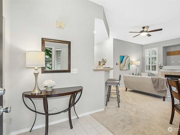 Welcome to Sterling Square at Trossachs! This sought after Berkeley floorplan has 2 bed/2 bath, 10 ft ceilings, gas fireplace, new carpet, paint, ceiling fans and wood plantation shutters throughout. The large kitchen overlooks an eating bar and flows into the living room and patio, perfect for entertaining. The primary suite basks in light, ensuite bathroom with double vanity, huge walk-in closet & linen storage. This home has full-sized laundry, all appliances are included, extra-wide 1-car garage with storage & second parking space. Enjoy the clubhouse with a pool, gym, and rec area. Surrounded by trails and in the award-winning Issaquah School District, this condo is the perfect place for you to call home. Strong HOA cover h20 & sewer.