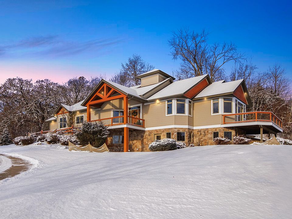 You will be impressed as you drive up to this beautiful Aspen Valley craftsman style home. This 4-5 BR home features an open concept kitchen, living room w/a fireplace surrounded by built-ins & a dining room w/panoramic windows/doors providing breathtaking views of Greens Coulee with an entrance to the deck. The large master BR suite has a luxurious tile shower, duel sinks, an air tub & spacious walk-in closet. In the walkout basement, you will find a family room w/a wet bar, a full BA, 2 of the BRs, an office, exercise room & large unfinished space. You'll have all the extra storage you need in the over-sized 3.5 car garage that has stairs to the LL. The home sits on an over-sized wooded lot & has manicured landscaping w/a limestone fountain that can be viewed from the great room.