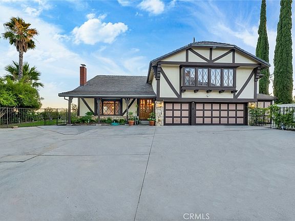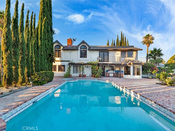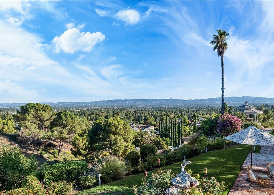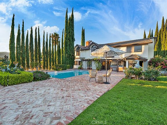 VIEW, VIEW, VIEW! Welcome to Porter Ranch, a distinguished community w/ award winning schools. Architecturally stunning, Old World Charm with custom woodwork, 4 fireplaces, custom wood beam ceilings in many rooms, king sized rooms and features. Nearly 4,800 sq ft on an acre of land, 5 bedrooms, 7 baths, each bedroom has it's own private bath. Serene peaceful setting on this one acre private flag lot, with views from most all the windows. 2 downstairs bedrooms, one bedroom doubles as a library with custom mahogany floor to ceiling paneling and high end built in cabinetry. No expense spared in this executive, prestigious library! Views of city lights & majestic mountains. Vaulted ceilings, dramatic grand staircase entry with soaring ceilings, center fireplace and french doors. Versatile open floor plan , 4 dramatic fireplaces, French doors in formal dining room & family room. with large wet bar, the perfect set up for entertaining. Kitchen with plenty of counter space and a cozy breakfast nook overlooking the stunning backyard. The enormous upstairs bonus room is perfect for entertaining & viewing your favorite films, oversized wet bar and lots of built ins, also with secret bathroom. How about a game of pool? Could easily be 2 primary bedrooms, Primary bedroom retreat w/ soaring ceilings, large walk in closets & balcony. Imagine enjoying your morning coffee and watching the sun rise. The other 2 upstairs bedrooms have been expanded, they each have full sitting rooms and walk in closets and their own private baths, one with a fireplace and designer detailed ceiling. Resort style back yard with pool/spa, built in BBQ, expansive grass area, mature landscaping, used brick decking, walkways and free standing Gazebo out on the point. You can see for miles and miles! This one of a kind estate would be perfect for a home business/office or multi generational living. Tankless water heaters, dual zoned A/C, many many upgrades.