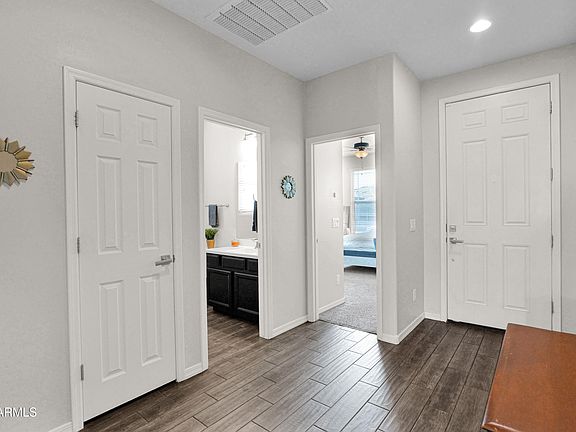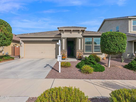 Come one, Come all, to see this Gorgeous home for sale in the serene Zanjero Trails community. At 1,902 sqft this home offers 3 bedrooms, 2 bathrooms, plus a bonus Den/Office with a large custom Barn Door for privacy. Key features include under eave Christmas light package, overhead garage storage racks, Lutron connected technology that allows you to control a large portion of the indoor and outdoor lighting with an App, no neighbors behind, all appliances included, Beautiful wood-plank tile everywhere except bedrooms, a laundry room connected to the Master Bedroom closet for ease of access, and so much more! Your new backyard retreat comes with am Immaculate pool with PebblecTec lining, and in-ground self-cleaning system, goes 6ft down on the deep end, pavers surrounding, and a large, perfectly placed Ramada for some poolside lounging. You will be surrounded by great views and can avoid the city noise, while being a mere 3 miles away from access to the 303, and only 3.3 miles to the new Prasada Gateway shopping center for all of your shopping, dining, and entertaining needs. Not enough, well then how about being 0.5 miles away from the new City of Surprise Aquatic Center including a recreational pool with water feature and slides, a 50-meter competitive pool with diving area, shaded stadium seating, locker rooms, concessions area, splash pads, and a group Ramada area with courts. Better hurry, great things are coming soon!