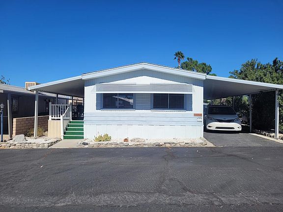18555 Roberts Road, Spc 17, in the Desert View Mobile Club, is a lovely, well-maintained 2-bedroom, 2-bath Skyline home with approximately 960 square feet of comfortable living space. As one arrives at the house, they are greeted by beautiful mountain views by looking to the southwest. A newer deck with a concrete slab patio beyond is situated on the home's west side and serves as the primary entrance to the house. The sliding glass doors open into the large, L-shaped living and dining area with laminate floors, large windows allowing plenty of light to enter, and a built-in hutch in the dining area. The adjacent kitchen also has laminate floors for easy cleanup, a breakfast bar/serving area, a refrigerator, a gas cooktop, and a gas-wall oven. The laundry area, with a newer washer and dryer, sits next to the rear door leading directly to the carport. A short hallway leads to the home's private areas. The primary bedroom, which easily accommodates a queen-sized bed, has a reach-in closet, built-in drawers, and an ensuite with a stall shower, toilet, and vanity. Across the hall is the guest bathroom with shower-over-tub, toilet, and vanity. The guest bedroom, which also easily accommodates a queen-sized bed, is at the end of the hall. Both bedrooms have carpet, while the bathrooms have vinyl flooring. Space rent is $548.14/month plus $24.71 for trash. Utilities are sub-metered. Call today about a private showing.