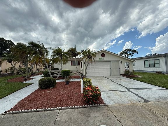 This well-cared for 2-bedroom, 2-bathroom Palm Harbor Home is being sold fully furnished.  As you arrive at the home, you will see the tasteful landscaping, screen garage door, gutters around the home, and covered entryway.  When you enter the home, you are greeted by the luxury vinyl floors.  The primary living area has plenty of seating for relaxing or entertaining with a ceiling fan.  The dining area has a table with chairs, built-in hutch with mirrors, & pendant light. The kitchen has plenty of cabinets, tile floors, and a pendent light over the breakfast bar.  The guest bedroom has 2 twin beds, bedroom furniture, a large closet, and carpet floors.  The guest bathroom has an updated vanity with tub & shower. The primary bedroom has a king bed with furniture, ceiling fan, large closet, and luxury vinyl floors.  The primary bathroom has an updated vanity, walk-in shower, and linen closet.  The lanai has a table with chairs, slide down windows, a ceiling fan, and carpet floors.    UPDATES: Roof (2025)  Only a few minutes to one of the five pools & hot tubs, clubhouse, & fitness center as well as tennis courts, pickleball courts and golf course. This community has a full social calendar and activity schedule. Plenty to keep you busy! This is a 55+ (very active) community.  Come join the luxury lifestyle this community offers!!