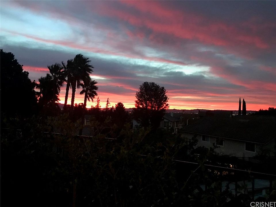This stunning valley to LA city view 4 bedroom, 3 bathroom, 2,695 sq.ft. move-in ready split level home on a 9,348 sq.ft. lot is located in the hills of Porter Ranch's most sought after neighborhoods north of Rinaldi! Double door entry opens to a gorgeous formal living room enhanced by a fireplace, vaulted ceilings, adorned with light from floor to ceiling double paned windows, and adjoining large formal dining room. Chef's spacious kitchen and breakfast area opens to the huge family room that offers a wet bar, fireplace, surround sound entertainment system, oversized slider with spectacular views of backyard. Private downstairs bedroom with 3/4 bath and laundry room with chute from upstairs. Extra wide staircase leads to master suite which offers a sitting area, fireplace, 2 gigantic closets (1 walk-in), private remodeled bathroom, and huge balcony. Two generously sized bedrooms - one freshly painted bedrooms with new carpet share a full bathroom. Highlighted features: Wood floors, newer A/C, double paned windows, copper plumbing, central air/heat, and direct access 3-car garage. Entertainer's low maintenance backyard features sparkling pool / spa, pond, gazeebo, and hardscape. Great location with NO HOA, near transportation, shopping, and, most importantly, within prestigious CASTLEBAY, Frost Middle School, and Academic Decathlon Winning GRANADA HILLS CHARTER HIGH SCHOOL boundaries, and CSUN!!
