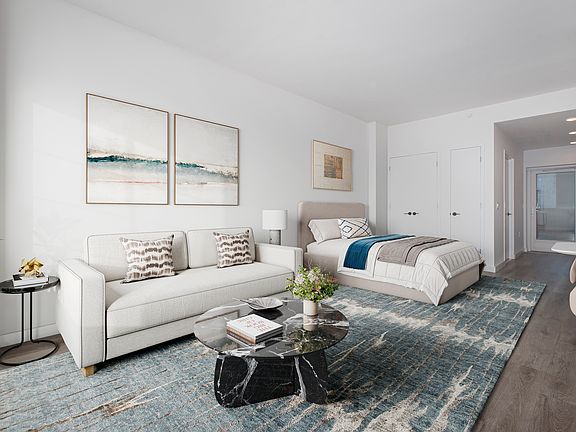 The building's amenities are designed to enhance your lifestyle and foster community. Gather with friends in The Arcade for a poker game, focus on work in the co-working space, or unwind in the stylish resident lounge with its landscaped outdoor terrace. Stay active in the state-of-the-art fitness center, or take in breathtaking 360-degree views from the rooftop sky lounge, complete with a kitchenette, BBQ grill, private cabanas, and a wraparound deck.