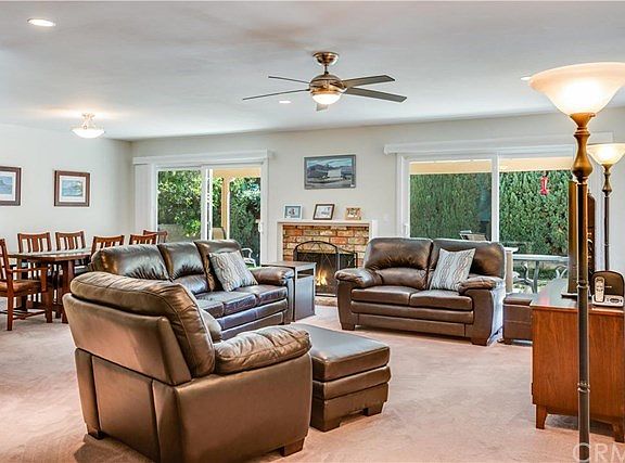 This 3 bedroom, 2 bath single-level home offers 1895 sq. ft. of indoor living space and plenty of room for outdoor entertaining. The huge living room with fireplace flows seamlessly into the dining room, kitchen, and backyard, extending the living and entertaining area. The backyard features a grassy area with an automated sprinkler system, plus a sizable covered patio, perfect for BBQing year-round. Each of the 3 bedrooms is spacious with generous closet space, and the master bedroom includes an en suite bathroom. The attached two-car garage has direct access to the home and ample built-in cabinet storage. This home is ideally located in the Award Winning Palos Verdes School district.