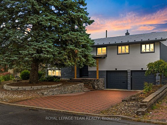 Welcome to 1856 Playfair Drive in sought-after Playfair Park. This fully renovated 4-bed, 2-bath home blends style, comfort, and convenience. The open-concept main floor invites gatherings with a bright living room and sleek gas fireplace flowing into a chef-inspired kitchen with stainless appliances, quartz counters, large island, and designer finishes. Step through sliding doors to a composite deck with gazebo perfect for morning coffee or summer BBQs overlooking a private, fully fenced yard. Three bedrooms and a large recently updated full bath complete the main level. The finished lower level is bright with large windows, offering a huge rec room with second fireplace, an office/den ideal for working from home, a versatile bedroom with Murphy bed, a stylish bath, and laundry. A durable metal roof, double garage with inside entry, and landscaped gardens add everyday ease. Just minutes to CHEO and The Ottawa Hospital General Campus, schools, parks, shops, and transit this home is ready for your next chapter.