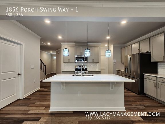 Discover modern comfort and effortless living at 1856 Porch Swing Way, located in the desirable Depot 499 community in Apex. This beautifully designed 3-bedroom, 2.5-bath townhome offers 1,990 sq ft of bright, open-concept living with thoughtful finishes throughout.
