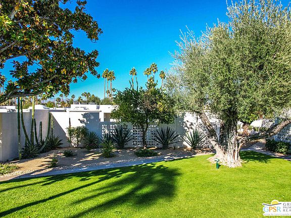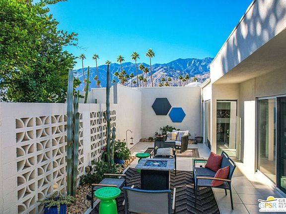 Discover this fabulous 2 bedroom and 2 bath condo at the Garden Villas East, a midcentury community in South Palm Springs. This fully renovated unit offers a large bright living room, a dinning area and an updated open kitchen. There is a large primary bedroom with sitting area and a wonderful ensuite bath. The guest room is also generous size. All bedrooms and living open onto the South facing private patio which offers glorious mountain views. This is a quiet end unit on the interior of the complex. Garden Villas East offer two community pools and spas, with BBQ areas, and is conveniently located near Smoke Tree shopping center. This property is on fee land, so you own the land. Contact agent to schedule a private showing.
