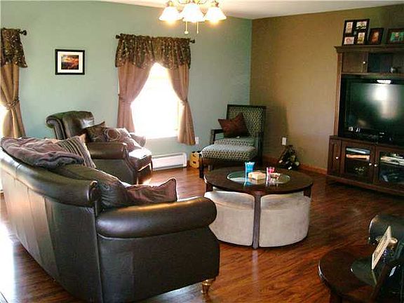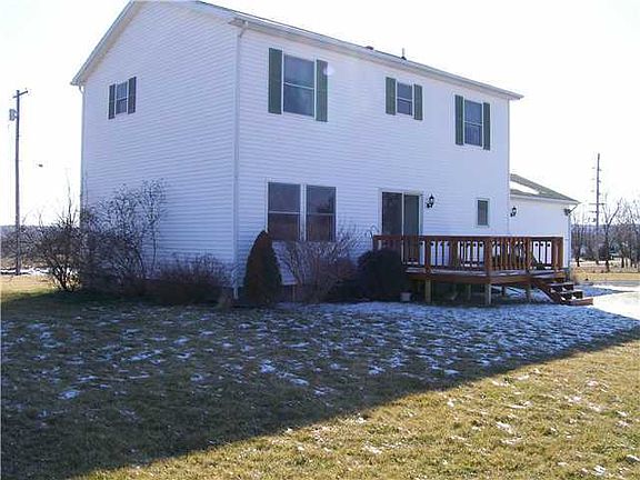 Newer built colonial just outside the village limits. This 4 bedroom 2.5 bath home sits on 1.6 flat acres and has a 2 car garage. This home is not lacking for space with an eat in kitchen, formal dinning room, 2 living rooms and a nice back deck. The master bedroom has a walk in closet and master bath. You'll love the potential offered by the spacious unfinished basement, great for a wood shop, kids rec room, of just storage. Utilities average $177 monthly, $124 gas, $53 Electric.