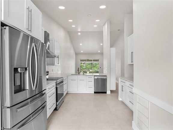 This recently updated 3 bedroom / 2 bathroom attached villa live like a single family home with volume ceilings and an extended back patio. The entire home is very light and bright and boasts an open floor plan for seamless living. The kitchen is equipped with the best of appliances and boasts an island that seats 5. All three bedrooms are spacious and the both bathrooms have been updated with modern streamlined tiles / quarts. The colors and finishes of this home showcase its neutral gray & white 18 x 36 porcelain floors and coordinate beautifully with the bathrooms and quartz countertops. Enjoy outdoor living on the extended patio and oversized back yard perfect for weekend barbeques, tossing a football or gardening. Yes! You can grill on the patio!! The extended driveway will fit your cars comfortably. Crown Pointe boasts reasonable fees covering essential amenities like cable/wifi, lawn/land maintenance, pool/recreational facilities, and exterior pest control. Additionally, reserves are maintained for exterior painting and ROOF replacements. Located in the desirable "X" flood zone, outside of the Special Flood Hazard Area, flood insurance is typically not required by lenders. Residents can enjoy a variety of amenities, including pickleball and tennis courts, and an exercise room. The nearby Rich King Greenway offers a beautiful and safe three-mile trail perfect for biking and walking. Crown Pointe is strategically located less than one minute from Kings Lake Square Shopping Center, which features a Publix, Starbucks, dining options, pet store, liquor store, and various other shops and conveniences. Furthermore, it's less than five miles from Naples' beautiful sunny beaches and the vibrant shops and restaurants of downtown Fifth Avenue. SELLER FINANCING PREFERRED - We are flexible and can craft a loan that may work for you! Let us help - Call us for more information
