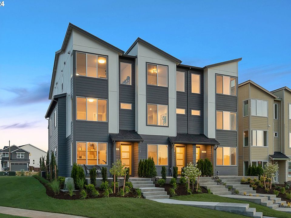 Original model home on true corner, fronting to park, is NOW AVAILABLE - Enjoy this one-of-a-kind location with all the bells and whistles! Up to $5K Credit on offers by 9/30/2024! Versatile floorplan offers 3 bedrooms + Den, 3 bathrooms, oversized 2-car tandem garage w/ driveway, and unique features you would expect in a high-end single-family home. Two-tone custom cabinetry, soft close drawers/doors, trash pullout, farmhouse sink, full-height kitchen cabinets to the ceiling, floating shelves, barn door, full wall tile surrounds at walk-in showers, solid MDF custom closet organizers w/ shelves, Whirlpool kitchen gas appliances, composite deck w/ aluminum rails, slab quartz counters throughout, electric car charging, heat pump water heater, central air conditioning, AND SO MUCH MORE! Close to major employers, multiple parks/trails, shopping, wine country, AND coveted Mountainside HS! Prop Tax TBD. HOA $117/month. 2-10 warranty included. Final home supersedes all info. **NEW Model Home located at 18700 SW Solitude St (use Google Maps for navigation)**