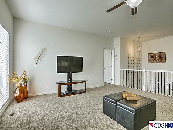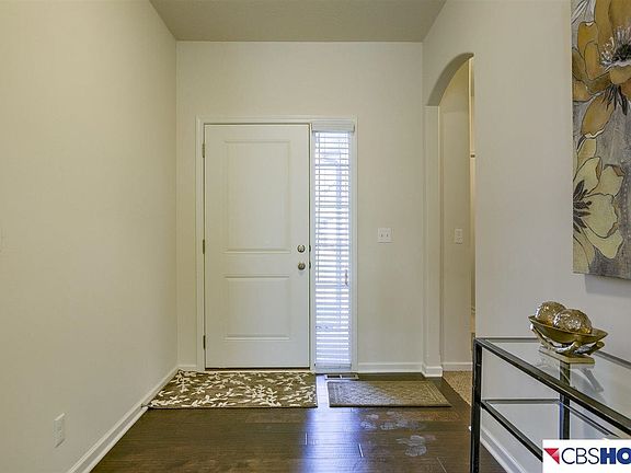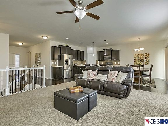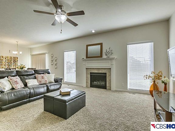 Stunning Ranch in Popular Falcon Ridge! Open floor plan w/dark wood floors, white woodwork, stately fireplace w/tile surround & decorative iron railings. Kitchen has plenty of cabinets, quartz counters, tile splash, bkfst bar, pantry, slate appli (gas range/dbl oven). Master Suite has W-I tile shwr, dbl vanity & W-I closet. Bdrms 2 & 3 have ceiling fans & easy access to full bath. Water softener, radon system, sprinklers, back patio, & level bkyd w/garden area. Move-in ready! Millard Schools.