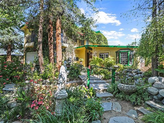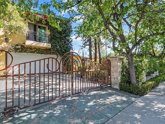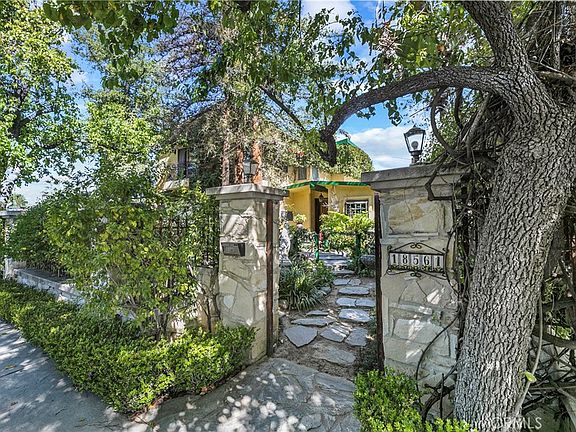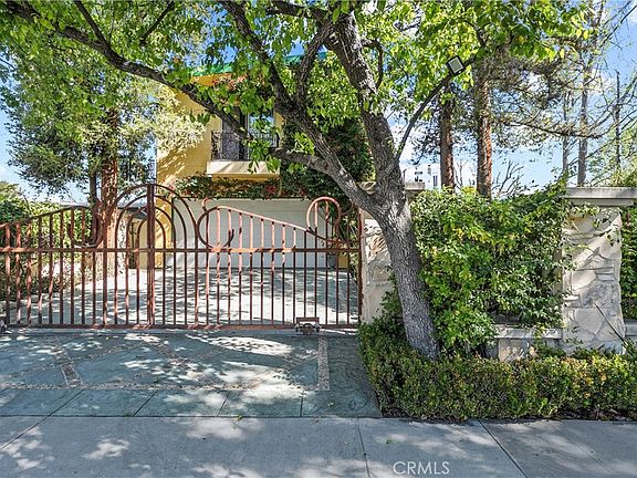 HIDDEN GEM of a home! This 3107 sq. ft., two-story home has 4 bedrooms and 3 full bathrooms. Be transported to the entertainer's backyard with an incredible pool. This home is perfectly located near CSUN and is close to the 405/101/118 freeways and some of the best Magnet Schools. As you enter the property, follow the light as it moves through the beautiful trees and the skylights. Upon entering this well-cared-for home, notice the many upgraded design features that reveal incredible attention to detail. There are wood-beamed ceilings, crown moldings, a wrought Iron Staircase with a matching Chandelier in the adjacent dining room, arched doorways, beautifully distressed wood flooring, Built-in wall units, a Custom Bar with sink, a double-sided fireplace with hand-laid stone between the dining and living room, two Juliet Balconies in the upstairs Master Bedroom, and so much more. On the first floor, you will find a Chef's kitchen with a DCS Dual Heat Stove with a large granite center Island with a built-in sink, a Bay window overlooking the majestic front yard, hand-carved crackled finished cabinets, a built-in bar with sink with storage and mirrored backdrop. There are 3 bedrooms and two bathrooms downstairs. One of the bedrooms is a 2nd Master Bedroom that can double as an ADU/Mother-in-Law quarters or multipurpose room. This 2nd Master Bedroom has a large full bathroom with a Jacuzzi tub, walk-in shower, a walk-in closet, and private sliding glass doors that lead you to the spectacular pooled backyard. Upstairs you will enter an arched entryway that leads you to the Master Bedroom, Office/Nursery, and walk-in closet. The Upstairs Spa, like the Master Bathroom features a Steam Shower, Separate vanities with polished Granite Countertops with Gold Fixtures, a Slate floor, tumbled marble mosaic tiled walls, a Skylight, and a Jacuzzi tub. The office/Nursery has two skylights and a window overlooking the Backyard. The Master bedroom has a stepped coved round ceiling and two Sliding doors that open to Juliet balconies. In the retreat-like lush backyard, there are tropical palms and manicured trees, which include perfectly placed greenery for maximum privacy. The custom-built Pool has multiple waterfalls, a Grotto, a deep-sized Jacuzzi with massage jets, and an outdoor covered bar with a gas barbeque. This home includes Custom Italian Plaster on the exterior, Newer Owned Solar Panels, an intercom entry gate, and an automatic driveway security gate.