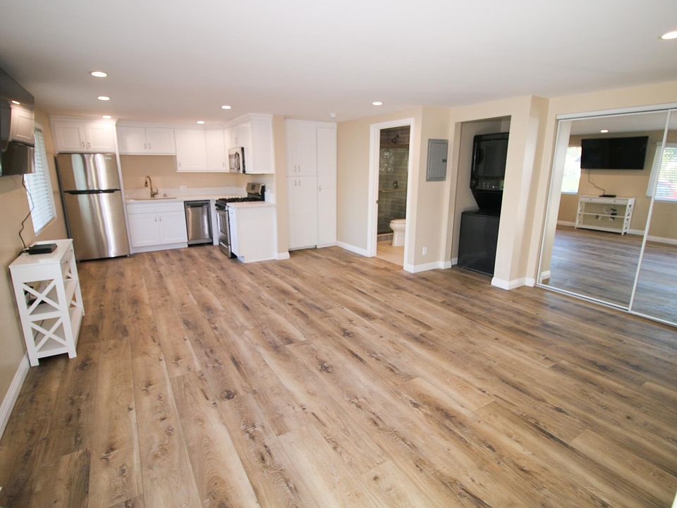 $1,990, Brand new never lived separate home (shared lot with another home on private lot), 2023 construction, 1 bedroom 1 bath single level open concept 600 sq ft, full kitchen with granite counters and all amenitiies, luxury vinyl plank flooring and tile, incredible bath with walk-in shower, washer-dryer included, hi-tech and energy efficient construction, 65" new wall mounted TV installed, ready for move-in occupancy, parking is ideal on driveway 10 ft from front door for easy access, close to Northridge Hospital, public transporation and shopping, private non-thru street, Hurry this is a rare find! Renter pays So Cal Gas, water and power-all individually metered for the unit