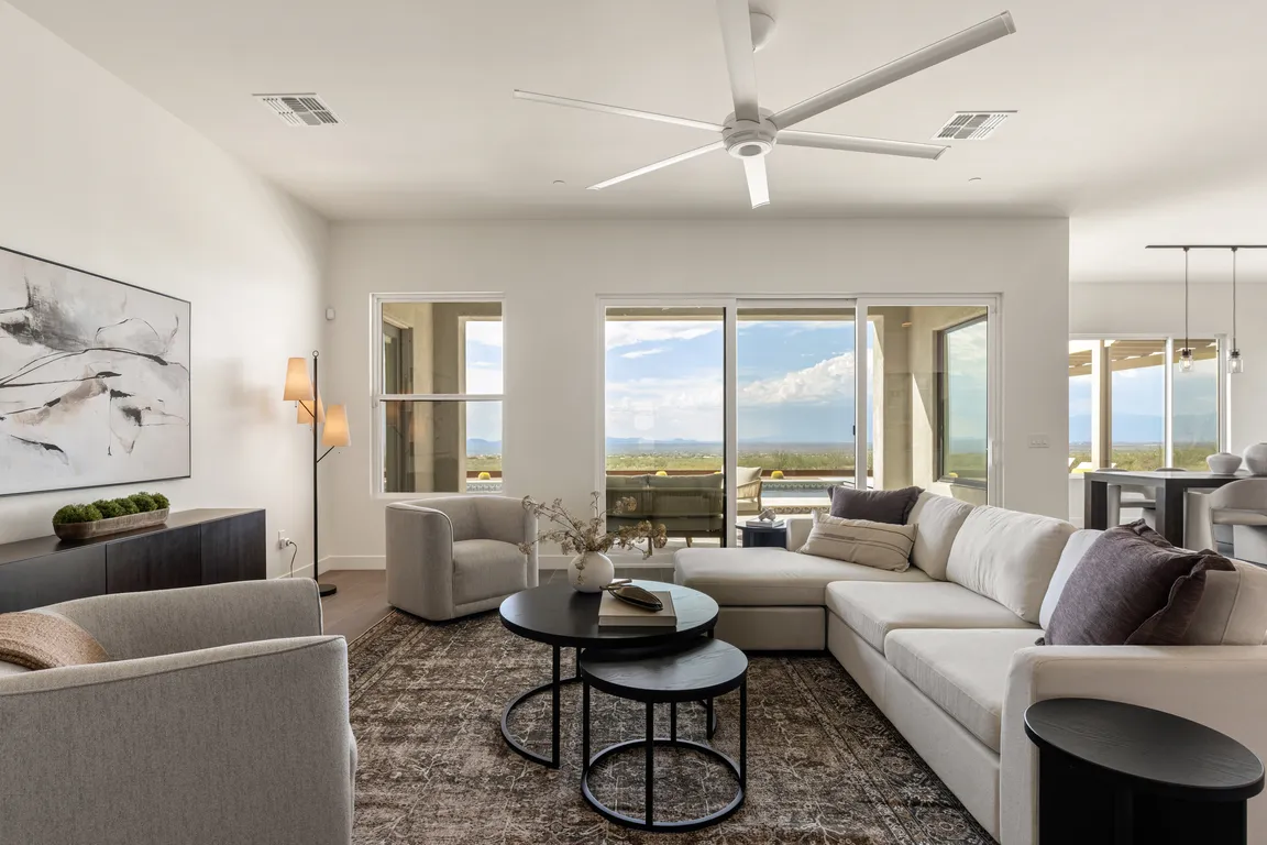 Heated saltwater poolCovered patioModern finishesTeen suiteSplit-bedroom floor planHigh ceilingsSweeping unobstructed views