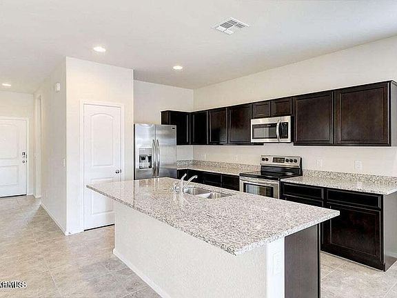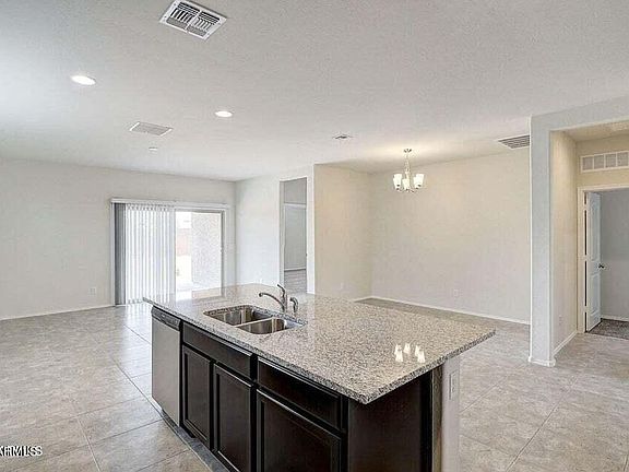 Quick Move-In! This Energy-star Certified Home has 1553 square feet, 3 bedrooms, 2 bathrooms. The kitchen overlooks the great room and the covered patio. The owner suite has a beautiful full bathroom with double sinks and a walk-in closet. Carpet in the bedrooms only! The kitchen is open to the tiled living room, perfect for entertaining! Energy Star features include Fresh Air Intake, Radiant Barrier Roof, Dual Pane Low E Windows, Vinyl window frames. Window coverings and garage door opener included. Desert Front & Backyard Landscaping included with auto timer. Please note that some of the pictures show a similar floor plan in a different community. Features and finishes may be different.