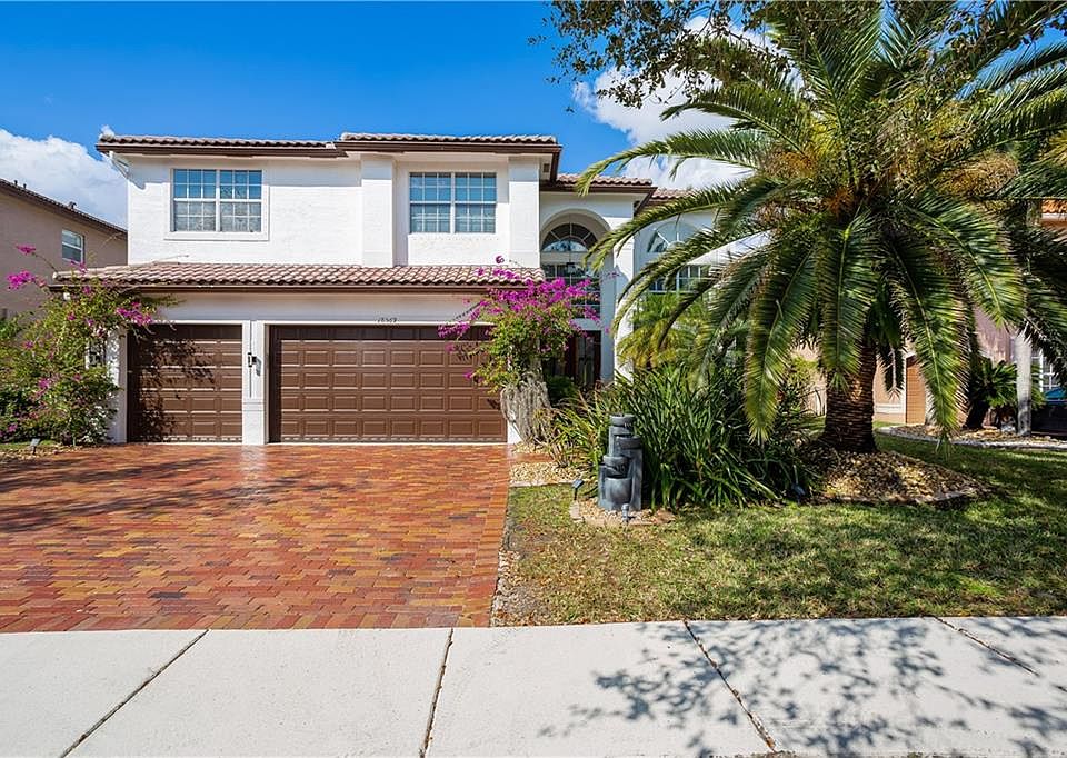 COMPLETELY UPGRADED 5/3 IN THE RESORT STYLE COMMUNITY OF SUNSET LAKES! THIS HOME HAS A SPECTACULAR BACKYARD WITH AN OVERSIZED MODERN SALTWATER POOL & SPA, TIKI HUT, COVERED SITTING AREA, OVERLOOKING THE LAKE. WHEN YOU WALK INSIDE THIS HOME YOU WILL NOTICE THE STUNNING FRONT DOORS, AND VOLUME CEILINGS. KITCHEN HAS BEEN UPGRADED WITH GRANITE COUNTERTOPS, MODERN CABINETRY, STAINLESS STEEL APPLIANCES & CENTER ISLAND. PRISTINE MARBLE FLOORING ON THE LOWER LEVEL AND WOOD LAMINATE FLOORING ON THE STAIRS & UPPER LEVEL. ONE FULL BEDROOM AND FULL BATH ON THE LOWER LEVEL, THIS BATH IS UPGRADED WITH BEAUTIFUL ONYX STONE THROUGHOUT. UPSTAIRS YOU HAVE FOUR ADDITIONAL BEDROOMS & A LOFT. THE SECOND BATH UPSTAIRS WAS RECENTLY UPGRADED MODERN STYLE. OVERSIZED MASTER W/ CUSTOM CLOSET & HUGE BALCONY!