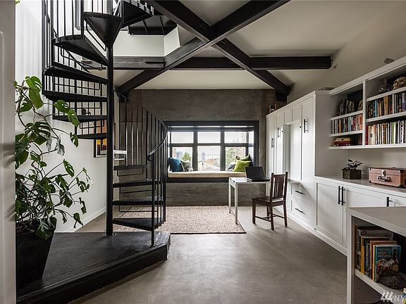 Natural light floods this rare historic home in The Sanctuary. No detail was spared in renovations, including exposed brick, green wall, high-end fixtures, concrete floors and steel beams, a re-imagined master suite featuring innovative Nana Wall doors, and stairs crafted from original church pews. Stunning west-facing views of the city skyline, Space Needle and Olympics. Upper bonus floor is a perfect work-from-home perch with built-ins, including Murphy bed. Great location, walk to light rail.