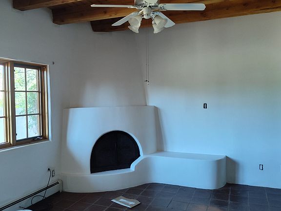 Kiva fireplaceLots of treesSouthwest-style townhome