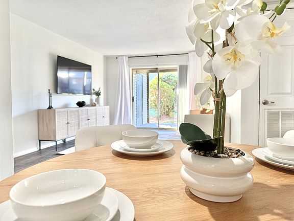 - Exterior features: Availability 24 Hours, Black Appliances, Brush Nickel Fixtures, Elegant White Cabinets, Flooring: Softwood, Flooring: Wood, Heating: Electric, Less Than One Year Lease, On-Site Management, One Year Lease, Online Maintenance Portal, Online Rent Payment, Package Receiving, Pet Park, Sewage included in rent, Upgraded Countertops, Water included in rent