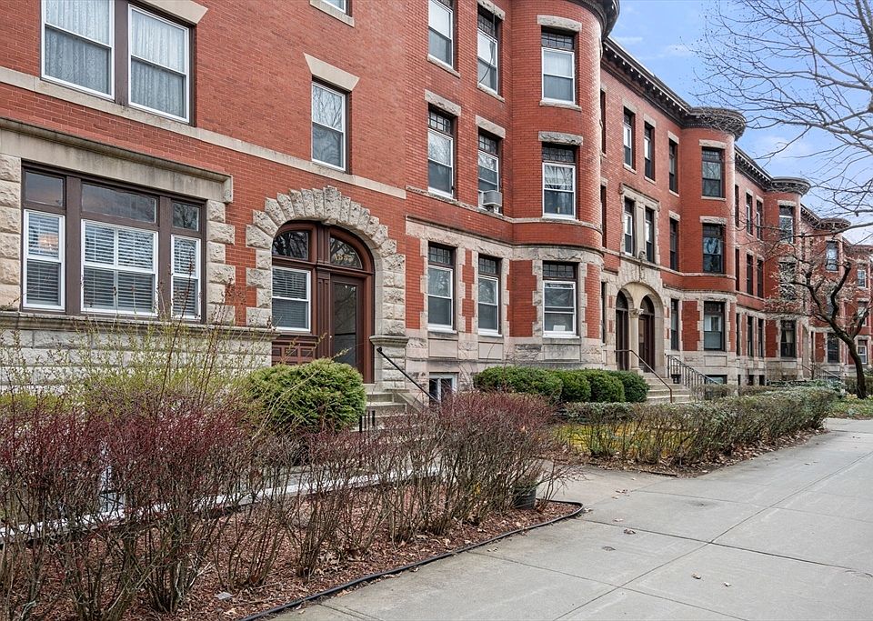 Rarely available 2 bedroom plus office on 1st floor of brick row house. An oversized foyer opens to the formal dining & living room with tile surround gas fireplace. Cascading natural light fills dining & living rooms through bay windows with plantation shutters. Wonderful space for entertaining. Exquisite woodwork, moldings, pocket doors, and architectural details are punctuated throughout. The eat in kitchen has been exquisitely renovated with the latest finishes and timeless design. 2 bedrooms, 2 full baths (1 with double marble vanity) ideal office, & in-unit laundry complete this comfortable flowing floor plan. Delightful screen-in porch and 2-tandem repaved and deeded parking spaces add to the ease of living. Abundant closet space. Newer HVAC and hot water tank. A stone’s throw to the Green Line and Waldstein pickleball courts. The building is professionally managed, pets allowed, has newer sprinkler system, plus extra storage. Classic Brookline condo!