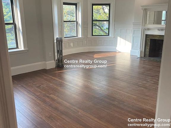 Decorative fireplaceOffice spaceClassic brookline brownstoneOriginal hardwood wainscotingBay windows