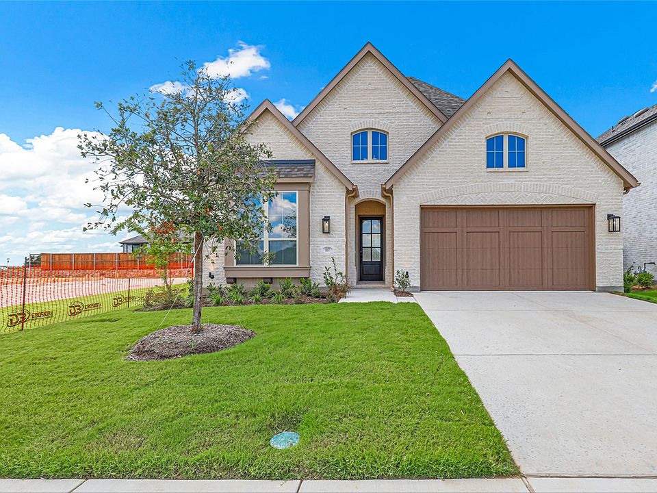 MLS# 20601714 - Built by Highland Homes - Ready Now! ~ The open layout, 11-12 ft ceilings, 8 ft doorways, & abundance of tall windows throughout this 1-story home will surprise you. Beautiful White Hillstone brick offers a light, neutral curb appeal. Featuring a formal dining room, separate breakfast nook, and kitchen island for ample seating space. The interior design offers light luxury vinyl plank flooring and black hardware fixtures throughout for a perfect mixture of neutral and contemporary. The stunning kitchen boats quartz countertops, white apron-front sink, glass accent cabinets, gas cooktop, and built-in microwave & oven. The primary showcases a beautiful freestanding tub and separate shower with tiled pan. Lastly, the extended covered patio is the perfect spot to unwind!!!!