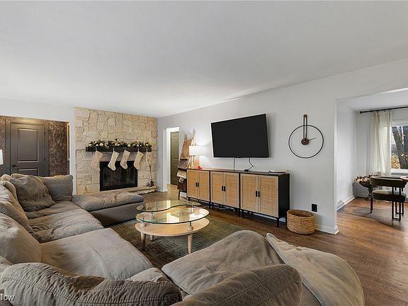 Welcome to this trendy, move-in ready ranch located in the heart of Stow! This home offers a warm and inviting layout, beginning with a spacious living room featuring a stone fireplace, huge picture window, and beautiful hardwood floors.