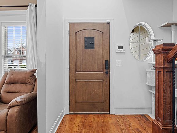 Thoughtful details are found throughout the home, including wainscoting, crown molding, and vaulted ceilings. Gleaming hardwood floors flow throughout the main level and upstairs hallway, adding warmth and elegance.