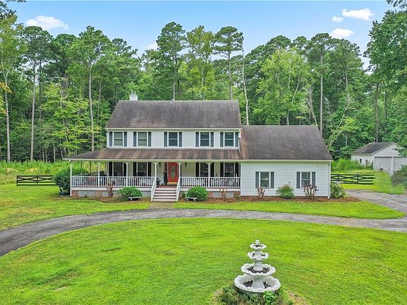This private retreat offers 6 bedrooms, an office, a bonus room over the garage, and an open-concept layout perfect for modern living. The first-floor media room, complete with a built-in screen, full bar, and full bath, opens to the back deck for seamless entertaining. The primary suite features double walk-in closets and a double-sided fireplace, creating a true owner’s retreat. Enjoy outdoor living with a wrap-around front porch, second-floor balcony, and oversized detached garage on a serene wooded lot. Conveniently located near the new Riverside Hospital, downtown Smithfield, and the up-and-coming Carrollton area, this home combines space, privacy, and accessibility.