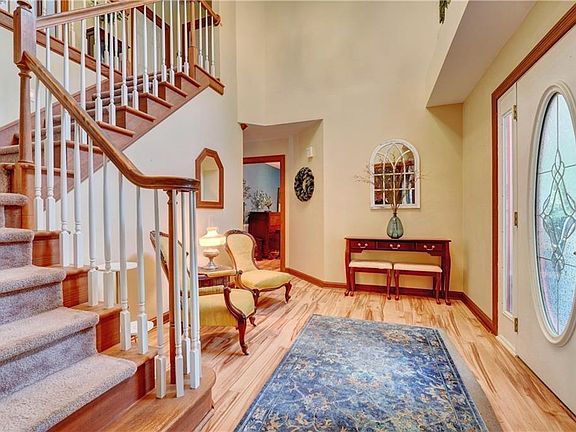 Double-sided fireplaceSecond-floor balconyOversized detached garageOpen-concept layoutFull barSerene wooded lotBuilt-in screen