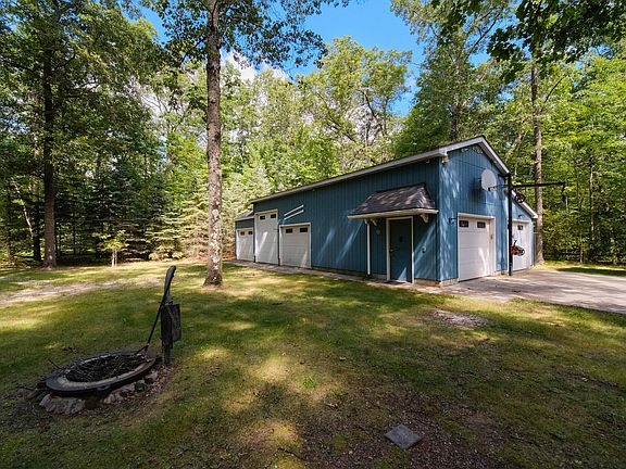 Property for the Up North adventurer. This cabin & garage are tucked in the woods on almost an acre. Who needs more than a cozy cabin with a 5 stall garage! This property is right on M-55, just down the road from world class fishing, Federal & State land & Caberfae Ski Resort. Cabin is a renovated Manufactured home with wood siding, newer windows, all new bathroom, new hot water heater with a great sunroom to enjoy viewing the wooded lot. The 5 Stall garage was hand built by the owner who was obviously a man of detail. Besides the 5 stalls there's an office space between the 3rd & 4th Stall, with the 3rd stall having a sunlight, wood stove & TV- the original Man Cave. The 4th Stall has a loft area. The garages can be accessed off both M-55 & Snyder Road. Maximum storage for all your toys 5 Stall Garage