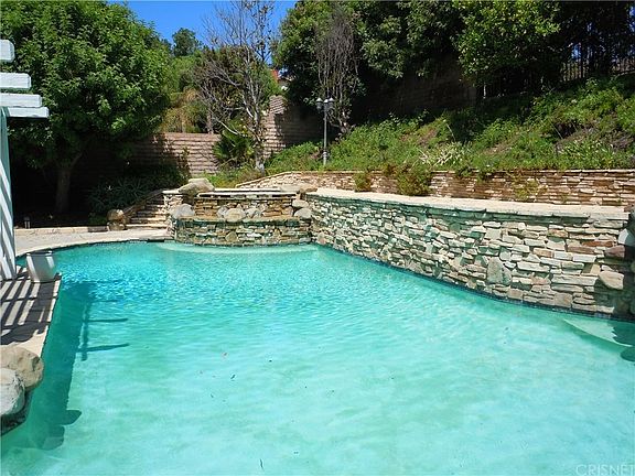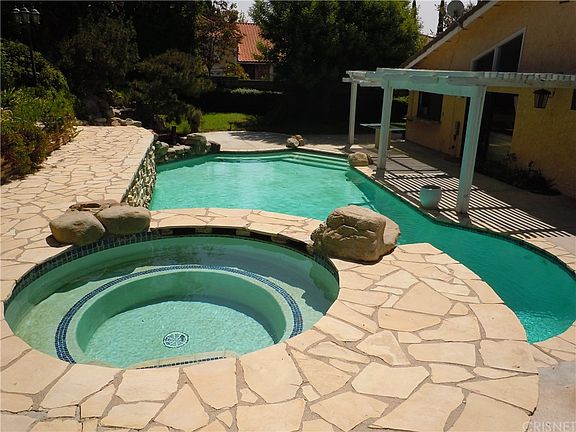 Spectacular North Of Rinaldi Porter Ranch Home! Features include 4 spacious bedrooms, 2 bathrooms, sparkling pool and spa on an elevated corner lot! Step through the formal entry into a spacious living room with vaulted ceiling and cozy fireplace. A formal dining room is located just off of the living room. Spacious family room also with a vaulted ceiling has a slider leading to the back patio and opens to the kitchen. Kitchen is updated with granite counters, breakfast bar, and lots of storage space. The four spacious bedrooms include a large master suite with a vaulted ceiling, slider leading to the back yard, en suite bathroom with dual sink vanity and extra wide shower & tub.The backyard features a sparking pool and an elevated spa with a waterfall feature. Immaculately landscaped, with lush foliage and shade trees. Spacious 3 car garage. Prime Porter Ranch location in the Granada High, Frost Middle, and Castlebay Elementary school districts. Submit on pets. Available furnished with additional deposit.