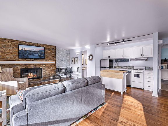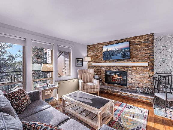 Gorgeous fully furnished and updated top floor end unit at Bend's renowned resort community, Seventh Mountain Resort. This turnkey unit is being sold with everything you need to continue successfully renting out nightly, or move right in and call it home. Updated features include LVP flooring, quartz counters, range, hood, painted cabinets and increased functionality with a rolling island and added dining space. The living area has a brand new sofa, cozy stone fireplace and a murphy bed. The primary bedroom has its own full bathroom and entry and can be locked off from the rest of the unit, creating two stand-alone rentals if desired. A wall of windows overlooks the patio above the Deschutes River Canyon where trails lead into the National Forest along the river. The resort draws tourists year round with amenities such as pools, hot tubs, a fitness center, pickle ball, tennis, volleyball, mini golf, disc golf course, ice skating, a restaurant/bar and more!
