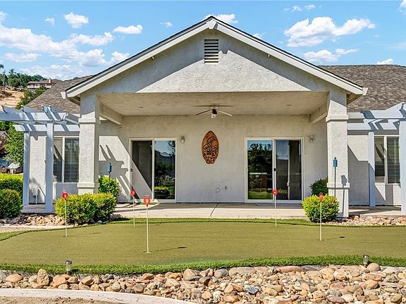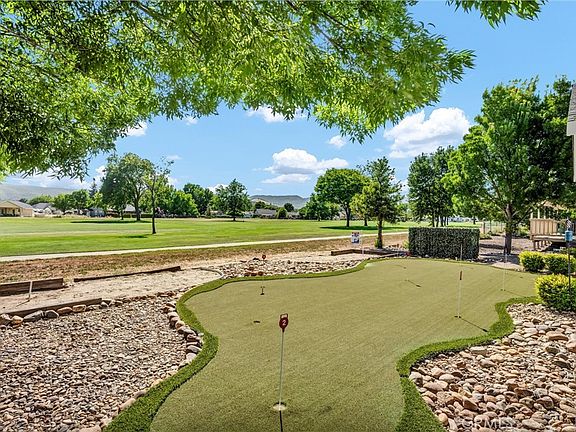 HUGE REDUCTION!! PRICED TO SELL! Situated on the 3rd Fairway at Hidden Valley Lake's Championship Golf Course, this 3 bed / 2 bath single level home offers 1,807 SF of spacious living space. Beautiful stucco home with new exterior paint and low maintenance landscaping will catch your eye from the road. Large level driveway with plenty of room for parking + a 3 car garage for your vehicles, golf cart or storage! The tiled entry leads to the spacious living room with vaulted ceilings and new vinyl plank flooring. Stately propane fireplace with brick hearth is a nice focal point in the space. The kitchen is open to the living room with a center island, tiled countertops and loads of storage cabinetry. Dine at the breakfast bar, dining nook or formal dining room off the entry. Desirable separation floorplan with 2 guest bedrooms & bathroom on one end with primary and full laundry room with utility sink on the other. Access the back patio from the living room or the primary bedroom. The views from the covered patio of lush green grass year round with surrounding hills in the distance will never get old! Up for some competition? A custom 9 hole putting green with fringe for chipping or the built-in horseshoe pit provides endless outdoor entertainment! The primary bedroom has plush carpet, a ceiling fan and an ensuite bathroom with large walk-in closet + built-ins, new vinyl plank flooring, large walk-in shower, soaking tub and dual sink vanity. This well maintained home shows pride of ownership, add it to your list today!
