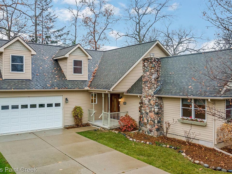 This beautifully rebuilt home (2008) is located on combined 4 lot parcel with access to the beautiful all sports Cass Lake. This home is bursting with curb appeal and features a covered front porch, flower boxes, and a stone chimney. The large living room/great room has a vaulted ceiling, lush carpet and an inviting gas fireplace with intricate millwork. The kitchen is complete with granite countertops, a breakfast bar, stainless steel appliances, and beautiful cabinets with dental style crown molding. The attached dining room has a door wall and extra cabinetry perfect for a coffee bar or serving station. The powder room has timeless beadboard and a cozy color scheme. The main floor primary suite features beautiful hardwood floors, a walk-in closet and a great bathroom with a custom barrier-free shower with a built-in bench. The laundry room is located off the garage. The upstairs 2nd primary suite has like-new carpet and its own full bathroom and fantastic closet space. There is even room for a third bedroom waiting for your finishing touches! The backyard is the ideal spot to enjoy Michigan summers. The large poured patio has room for gatherings of all sizes. The shed has room for your yard tools and beach gear plus it is grandfathered in. The attached garage has room for two cars plus storage. Water is included in the association fee as well as roads and bridges. Home sits on combined lots and may be splittable. Another great feature is the private association which gives you Cass Lake access with a community beach, community center and you can get on the waiting list for your own boat slip! Come see it for yourself and fall in love with your happily ever after. Subject to probate court approval.