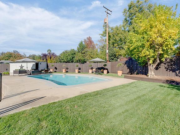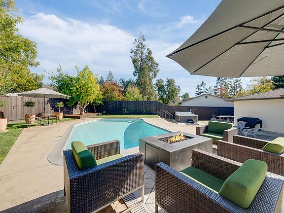 Amazing location! Refined living in this beautifully reimagined and remodeled, fully permitted 3 bed, 2 bath pool home tucked away on a peaceful Glancy Manor cul-de-sac. Set on a rare 10,500 sq ft lot, this residence blends luxurious finishes with the confidence of top-to-bottom upgrades, including a new roof, new plumbing and electrical, 200-amp panel, insulation, energy-efficient windows, smooth-finish walls, can lighting, and solid core doors. The designer kitchen shines with custom solid wood cabinetry, quartz countertops, a KitchenAid appliance suite, and an oversized island perfect for inspired cooking and entertaining. Spa-like bathrooms elevate daily living, while the primary suite features glass panel door/windows framing views of the backyard that invites natural light into the space. The resort-style backyard is your private escape with a newly replastered and re-tiled pool, new hot tub/spa, pool house with and a new concrete pad, plus bathroom and shower! The beautiful lush landscaping, new sod, new drainage, and all new redwood fencing, is ideal for lounging or gatherings. Additional upgrades include a 220V outlet, elegant shutters, and a new storage shed! Plus potential for development of side yard access for your boat or RV. Welcome home to effortless luxury!