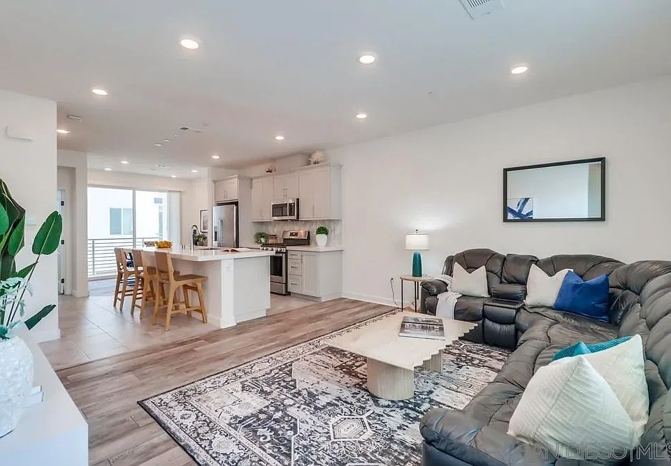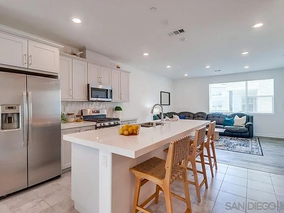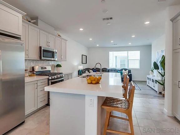 Welcome to your dream home with owned solar in the highly sought-after Millenia community of Chula Vista! Built in 2020, this modern tri-level residence features 4 spacious bedrooms and 3 full luxurious bathrooms, offering comfort and ensuring ample space for your family’s needs. As you step inside, you'll be greeted by soaring high ceilings, a first floor bedroom with a private patio, ideal for guests or a home office, and a 2-car attached garage for extra convenience.