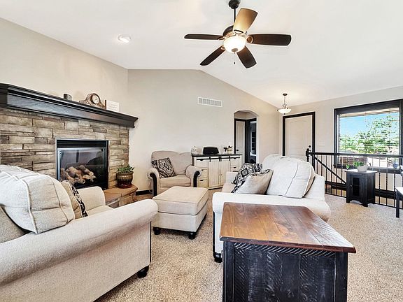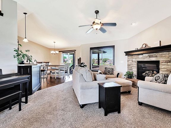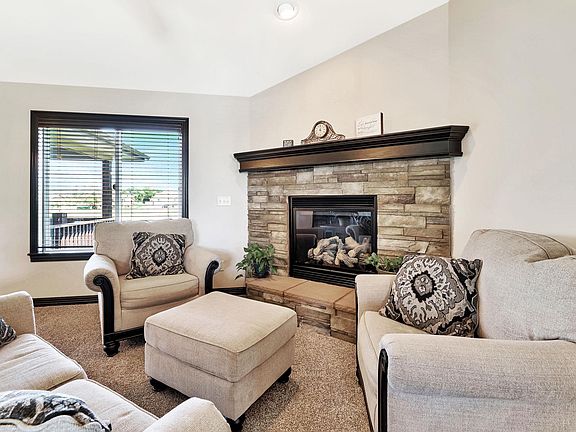 This one-owner, custom-built home in the sought-after Silverton addition offers an elegant and functional layout. The open kitchen flows seamlessly into the dining room, making it perfect for entertaining. The kitchen is well-equipped with modern appliances and features a spacious walk-in pantry. The main level includes a convenient laundry room and three bedrooms. The master bedroom is a true retreat with a luxurious master bath and a walk-in closet. One of the additional bedrooms on the main level is equipped with a built-in Murphy bed, providing flexibility for use as a guest room or home office. The fully finished view-out basement is a showstopper, featuring a massive family room ideal for gatherings or relaxation. This level also includes an additional bedroom, a dedicated office space, and a stunning full bathroom with a relaxing whirlpool tub. Outside, the home is surrounded by lovely landscaping, maintained by a sprinkler system fed by an irrigation well. Enjoy peaceful evenings on the covered deck, which overlooks the neighborhood lake—a perfect spot to unwind. The oversized garage, built larger than standard, provides ample space for vehicles and storage.