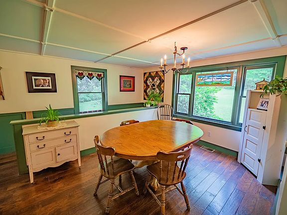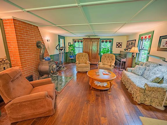 Traditional Vermont charm! [Zillow's map is incorrect, the house is NORTH of Northfield] While technically, yes, this house is on Route 12, the driveway takes you significantly up and away from the road. A mature tree line completes the barrier between the house and the road creating a private and peaceful setting that's only 10 min to Montpelier or Norwich U. A sizeable backyard, perennials, and the sounds of a neighboring stream create a peaceful home that's both meticulously and lovingly maintained over the years. Enter through a three season sunroom into a designated mudroom space that leads to a small office or playroom and then the kitchen which has its own dining nook, how cute is that! The lengthy dining/living room has wood floors, a picture window and even a prized Vermont Iron and Stove Works "The Elm" potbelly wood stove that will keep you cozy all through the long winter months. A bathroom finishes off the first floor. Upstairs you'll find three somewhat equally sized rooms that could be used as bedrooms, office space, gym you name it! At the end of the hall is the primary bedroom with an en suite bathroom, walk-in closet and even a designated bonus creative space complete with build-in shelving.