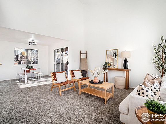 Welcome home to this cozy home centrally located in Longmont. Here you will find a two bedroom, two bathroom home with brand new interior paint, carpet, new kitchen countertops with a custom live edge breakfast bar, updated bathrooms, and lighting fixtures. The vaulted ceilings and large windows allow the sunlight to come right in. The big deck off the back makes entertaining a breeze. Just a few blocks from shopping and Garden Acres Park.