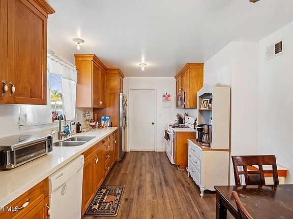 Charming Single-Story Home in the Heart of Simi Valley. This beautifully designed 4-bedroom, 2-bathroom home offers an inviting open floor plan with elegant wood flooring throughout the main living areas. The kitchen seamlessly connects to the formal living room, creating a perfect space for gatherings. The bright and airy family room provides stunning views of the spacious backyard, perfect for entertaining. A 2-car garage, conveniently located off the kitchen, features pull-through doors that open to the backyard for added functionality. With ample outdoor space and fruit trees planted throughout the property, this home is ready for you to make it your own. Plus, it comes with a brand-new roof and windows for peace of mind.